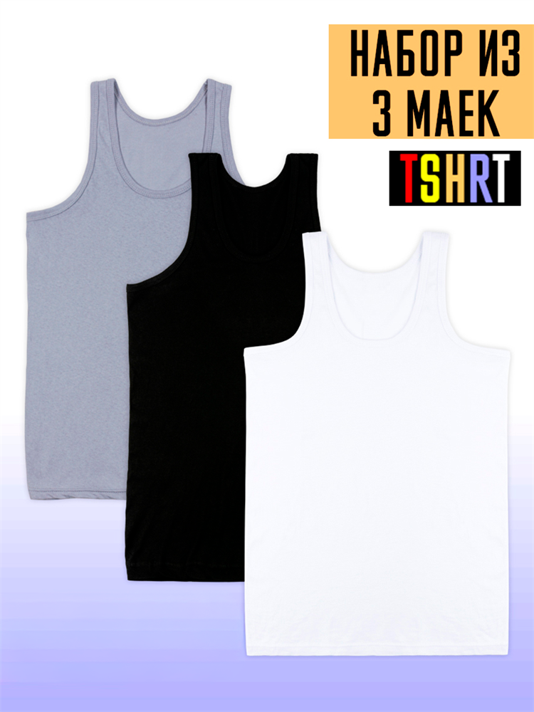 Майка мужская бельевая борцовка бесшовная Комплект 3 шт. Серый, Черный, Белый
